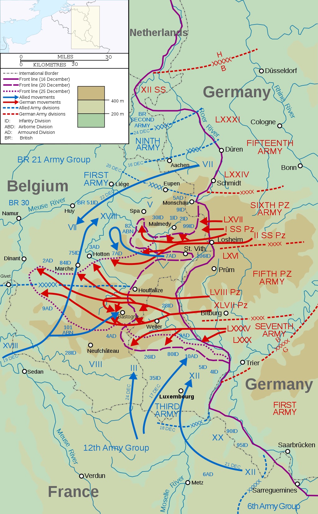 After Bill was evacuated the 28th Division was sent to the rear in the Ardennes east of Bastogne for” rest and recuperation.” In a month the Division found itself at the center of the Battle of the Bulge.