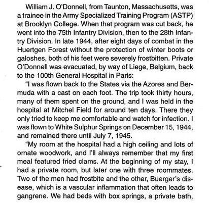 After 8 days on the front lines and four days in combat, without winter boots or overshoes, both of Bill’s feet were frostbitten.