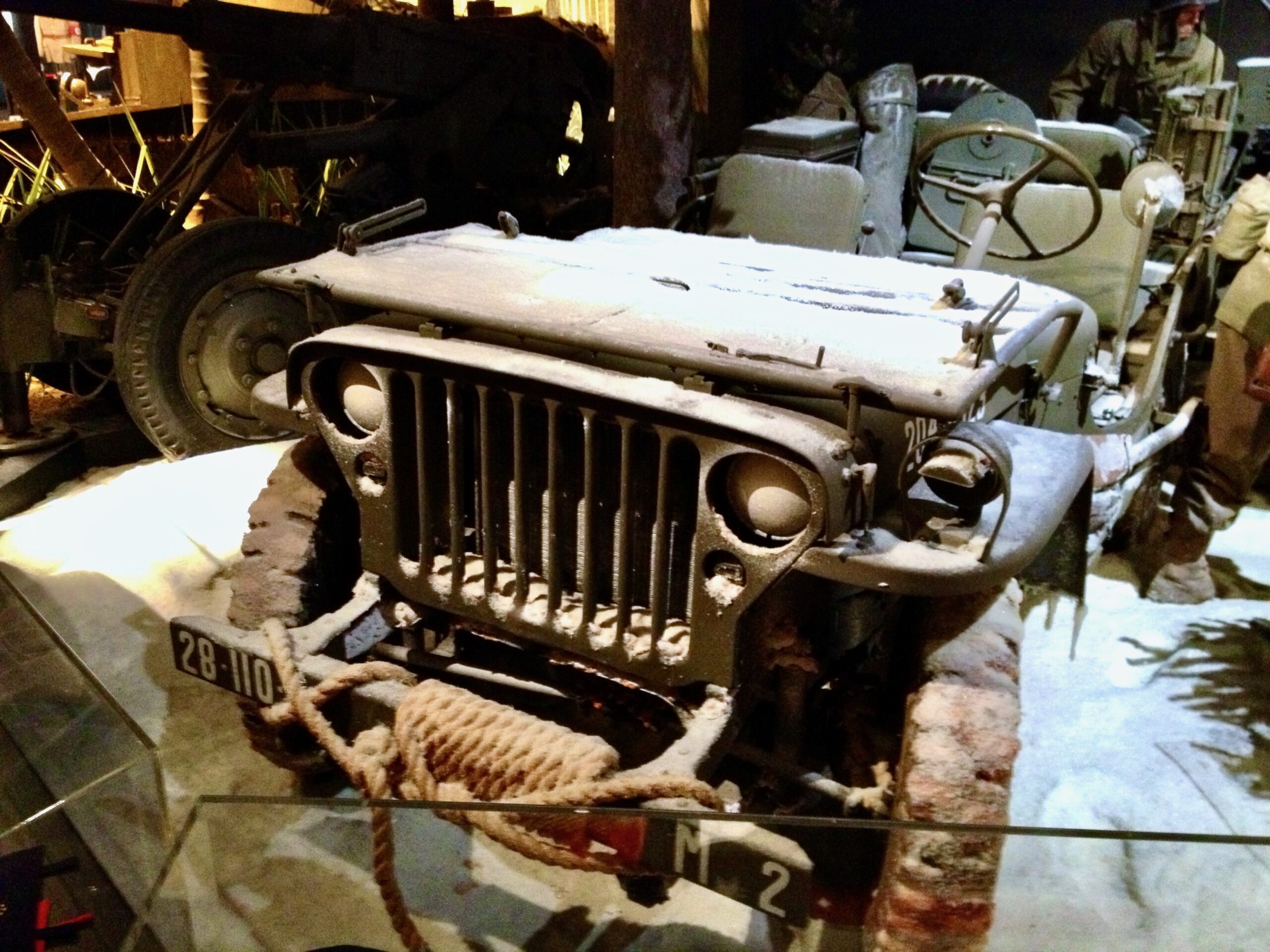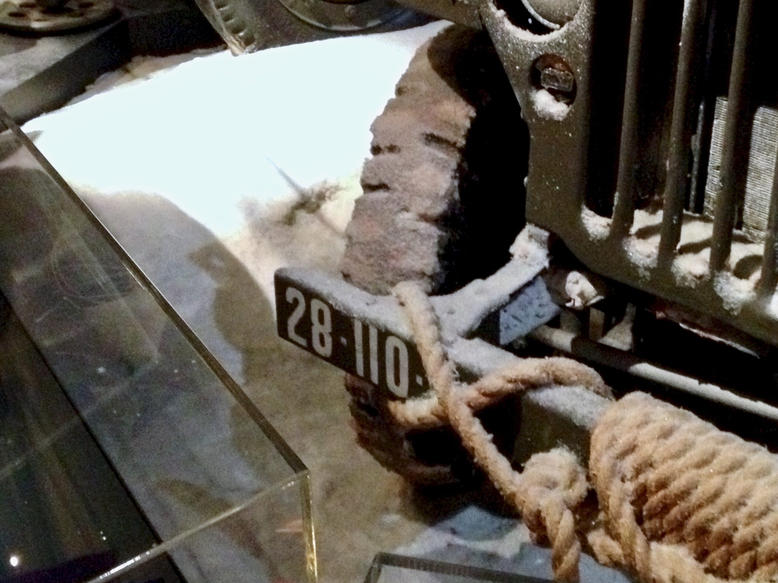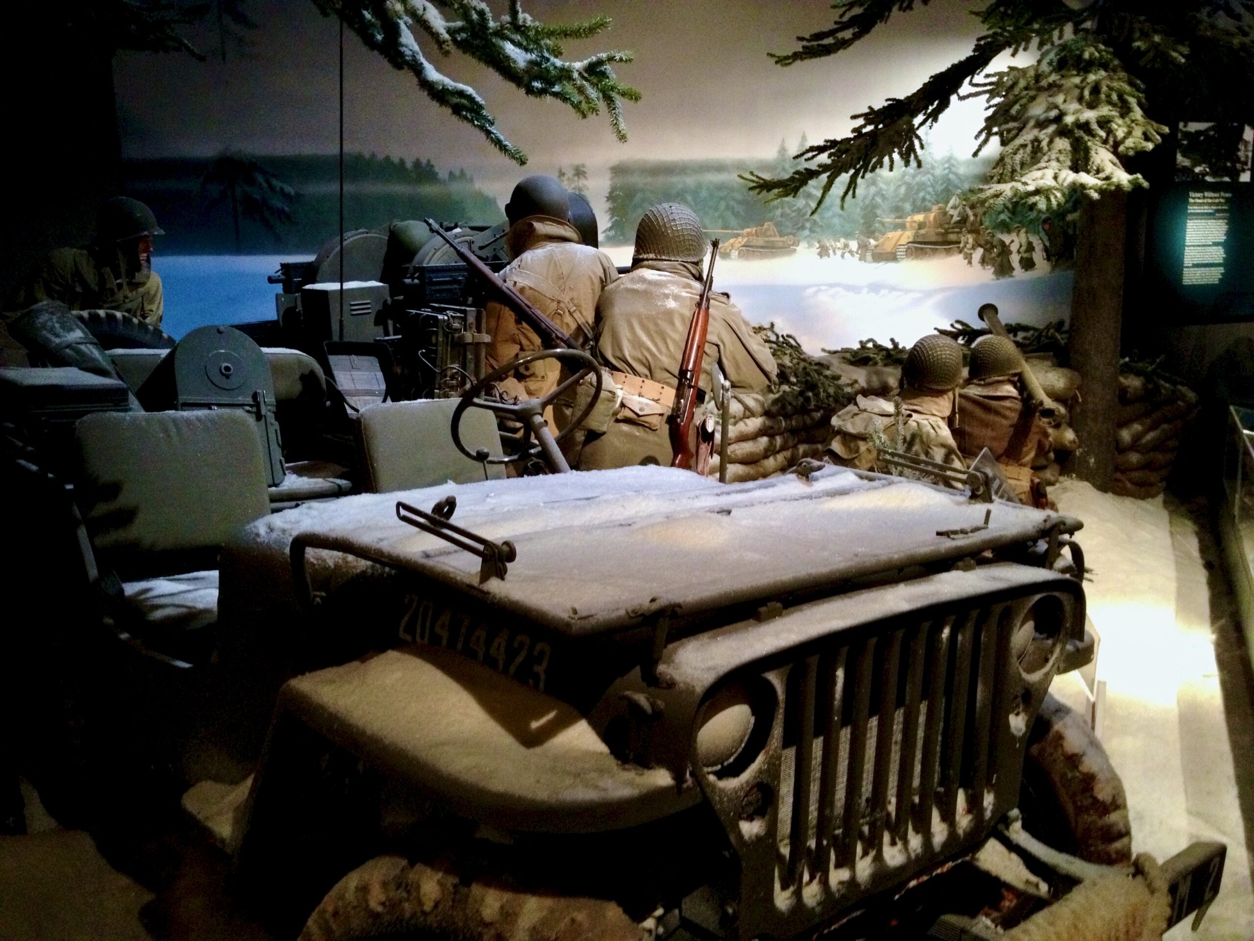 Examining the Battle of the Bulge exhibit in the Wisconsin Veterans Museum, Bill said, “That jeep’s from my Regiment, 28th Division, 110th Regiment.“