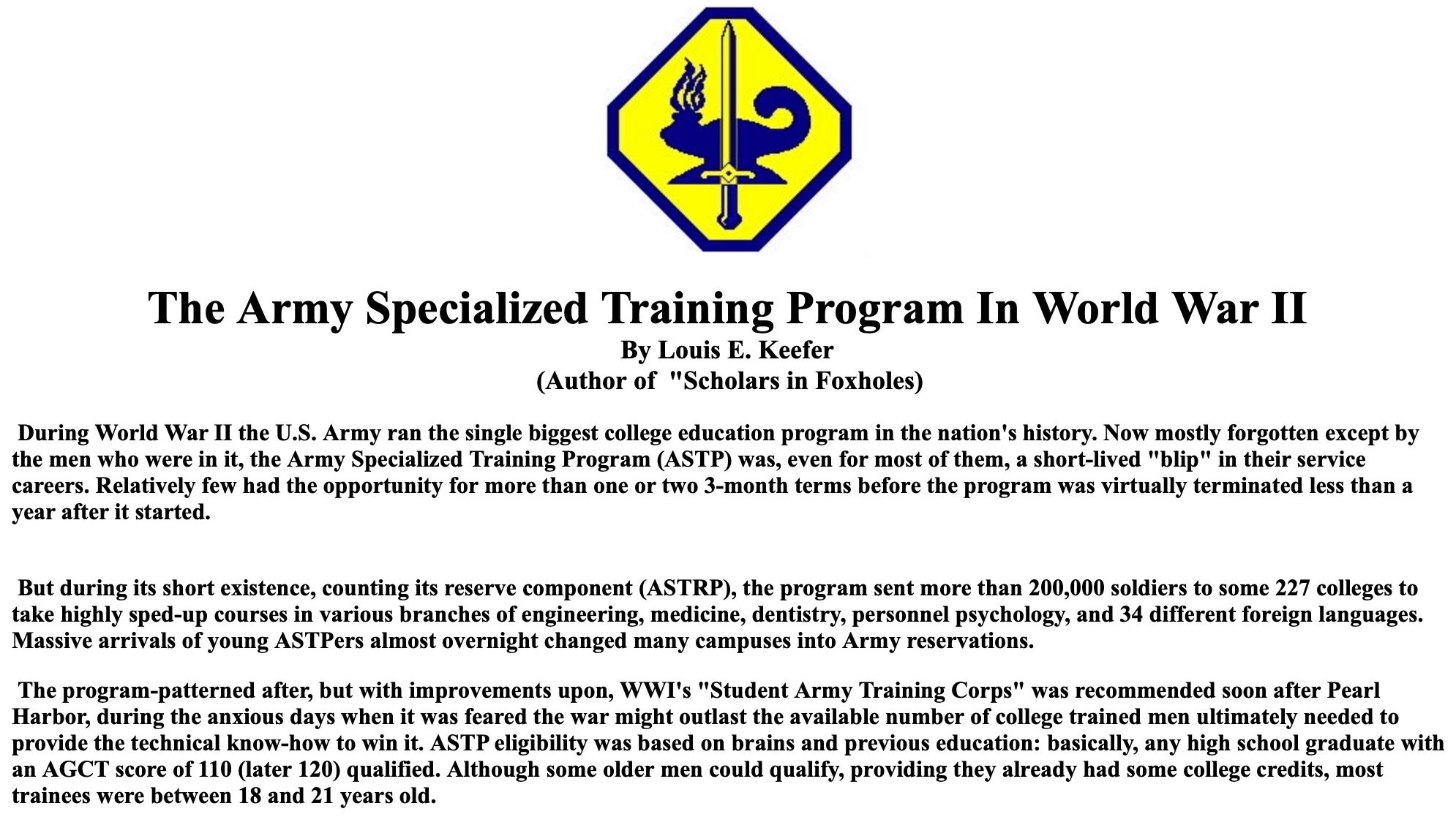 The Specialized Training Program sent 200,000 soldiers to 227 colleges for sped-up courses in engineering, medicine, dentistry, psychology, and foreign languages.
